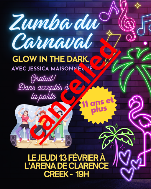 7pm Carnival zumba “Glow in the dark” with Jessica Maisonneuve
